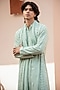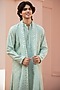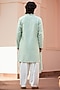 Featuring a sage green kurta in chikankari base. It is paired with off-white tussar salwar pants and a georgette dupatta. Style it with mojaris for a festive occasion, wedding, sangeet or engagement ceremony, exuding traditional charm and elegance.