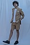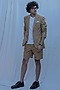 Featuring a tan brown blazer in premium cotton base with lapel collar. It is paired with matching shorts. This contains only two pieces.
