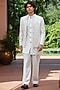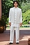 Featuring a white indowestern jacket in chikankari base. It is paired with a terry wool kurta and pants. Style it with mojaris for a festive occasion, reception, wedding, sangeet or engagement ceremony, exuding traditional charm and elegance.