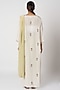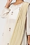Featuring an off white top in crepe base with block print. It is paired with contrasting pista green pants and an attached dupatta.