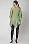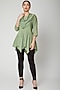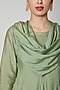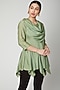 Featuring an olive green asymmetric top in tencel base with attached cowl. This contains only one piece.