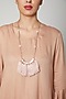 Featuring a rose gold asymmetric dress in tencel base with a cowl and bell sleeves. It is paired with a matching necklace.