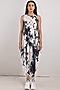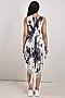 Featuring a white and black asymmetrical dress in crepe base with hand tie-dye print and fringes. It is paired with a matching spaghetti top.