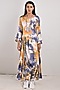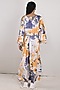 Featuring a white maxi dress in modal base with blue and mustard tie-dye print including double-layered bell sleeves. It comes with a neckpiece.