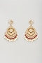 Featuring a pair of 18kt gold plated chandbaali earrings studded with kundan polki, semi-precious stones, ruby pumpkin carved stones, natural pearls and beads, set in mixed metal. Perfect wear for festive occasions.