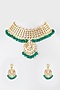 Featuring a 22 Kt micro gold plated necklace studded with kundan polki, green semi-precious beads, set in mixed metal. It is paired with a matching pair of earrings.