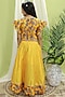 Featuring a yellow lehenga for girls in chanderi base. It is paired with a top having floral print. Accessorize this lehenga with matching hair accessories and sandals for a stylish ensemble, ideal for a wedding or any festive occasion.