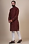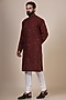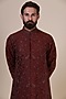 Featuring a maroon kurta in raw silk base with floral and paisley embroidery. It is paired with churidar pyjama pants. Perfect wear for festive occasions.