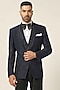 Navy Blue Silk Jacquard Fabric Metallic Embroidered Tuxedo Set