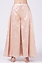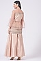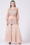 Featuring a blush pink peplum top in brocade chanderi and organza base with hammered dapka and silk thread embroidery and bell sleeves. It is paired with matching sharara pants.