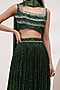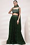 Featuring a grass green lehenga in chinon base with hand paint. It is paired with a upada silk blouse having deep round neck, hand embellishments and a shimmer georgette dupatta. Accentuate it with statement jewellery and heels for a wedding or sangeet ceremony.
