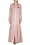 Featuring an icy peach shirt shrug in bhagalpur cotton silk and cotton dobby base with velvet heart shaped patch, silver hammered dabka and thread embroidery. It is paired with inner long dress.