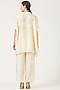 Featuring an off-white kaftan shirt in dola silk base with multi-colored digital print. It is paired with matching straight pants.