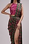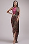 Featuring a pink-green draped saree in upada silk, cotton viscose and cotton voile base with hand-painted print. It is paired with a halter neck blouse having sequin hand embellishment. Accentuate this designer set with statement jewellery and heels for an engagement, sangeet or cocktail ceremony.
