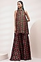 Featuring a pink-green A-line short tunic in upada silk and cotton voile base with hand-painted grass print. It is paired with upada silk palazzo pants. Accentuate with statement jewellery and heels for festive occasions.
