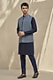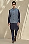 Featuring a blue bundi jacket in cotton silk base with embroidery. Style it with a kurta set and pair of mojaris for a reception, sangeet, wedding or engagement ceremony.