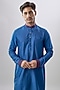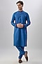 Featuring a cobalt blue and maroon kurta in cotton silk base with geometric print and embroidery. It is paired with pants. Perfect attire for festive occasions or wedding ceremonies, exuding traditional charm and elegance.