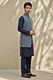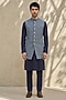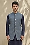 Featuring a blue sleeveless jacket in cotton silk base. Style it with a kurta set and pair of mojaris for a reception, wedding, sangeet or engagement ceremony.