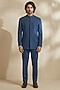 Featuring a cobalt blue bandhgala in wool base with pintuck embroidery. It is paired with pants. Style it with pair of mojaris for a reception, sangeet, wedding or engagement ceremony.
