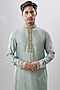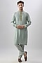 Featuring a green kurta in jacquard silk base with floral print and zardosi embroidery. It is paired with pants. Perfect attire for festive occasions or wedding ceremonies, exuding traditional charm and elegance.