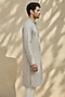 Featuring a grey and white kurta in textured cotton base with print. It is paired with pants. Style it with pair of mojaris for a festive occasion, cultural event or pooja ceremony.