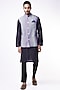 Featuring a lavender and mint bundi jacket in flat raw silk base with aztec print. Perfect wear for a festive occasion or pooja ceremony.