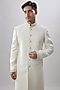 White Herringbone Matka Silk Embroidered & Printed Sherwani