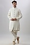 White Jacquard Brocade Silk Printed & Embroidered Sherwani