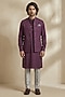 Featuring a wine bundi jacket in textured cotton base with print. Style it with a kurta set and pair of mojaris for a reception, sangeet, wedding or engagement ceremony.