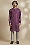 Featuring a wine kurta in textured cotton base with print. It is paired with pants. Style it with pair of mojaris for a festive occasion, cultural event or pooja ceremony.