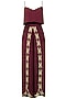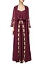 This set features a burgundy flared crop top in double georgette base with front open cape jacket in georgette with applique embroidery. It is paired with matching applique embroidered wrap pants in satin linen.
