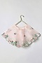 Featuring a dusty pink dress for girls in organza base with embroidery. It is paired with a cape. Style it with cute hair accessories and sandals for birthday parties or evening gatherings.