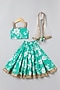 Green Cotton Floral Printed Lehenga Set For Girls