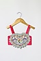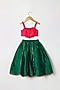 Featuring a green and red lehenga for girls in taffeta base with embroidery. It is paired with an embroidered blouse. Style it with cute hair accessories and sandals for a wedding or festive occasion.