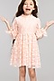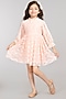 Featuring a peach dress in nylon viscose base with a victorian neck and lace embellishments.