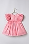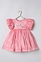 Featuring a peach pink dress for girls in tissue base with embroidery. Style it with cute hair accessories and sandals for birthday parties or evening gatherings.