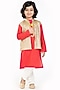 Red Kurta Set With Waistcoat For Boys