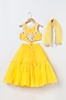 Featuring a yellow lehenga for girls in chiffon base. It is paired with an embroidered blouse and a dupatta. Style it with cute hair accessories and sandals for a wedding or festive occasion.