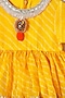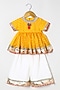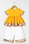 Featuring a yellow kurta for girls in kota doria base with gota embellishment. It is paired with palazzo pants. Style it with sandals and hair accessories for vacation wear or playdate.