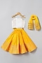 Featuring a yellow lehenga for girls in matka silk base with gota work. It is paired with a white choli and a dupatta. Style this designer lehenga set with sandals and cute hair accessories for any festive occasion or haldi ceremony.