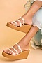Featuring a pair of beige wedges in faux leather base with pearl detailing. It has a PU underlining and 3 inch heel.