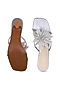 Featuring a pair of silver heels in PU vegan leather base with floral detail. It has 3-inch heels. Step into luxury and make a statement with every step in these meticulously crafted and opulent shoes.