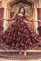 Featuring a brown anarkali in organza base with print and gota patti detailing. It is paired with matching pants and a dupatta.