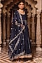 Featuring a navy blue anarkali in rayon base with gota work. It is paired with matching pants and a dupatta.