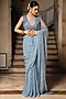 Featuring a powder blue saree in chiffon base with cutdana embroidery and an attached unstitched blouse piece.