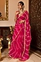 Featuring a rani pink leheriya saree in chiffon base with gota patti work. It is paired with an unstitched blouse piece. Accentuate with statement jewellery and heels for a wedding or festive occasion.