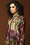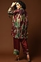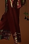 Featuring a burgundy and leaf green tunic in habutai silk base with aari embroidered cuffs and tie-dye print. It is paired with matching straight pants.