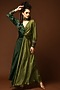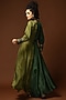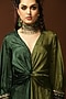Featuring an emerald green and olive green overlapped dress in habutai silk base with pleats and cuffs. Accessorize this designer dress with statement earrings and heels for a vacation wear or cocktail party.