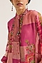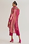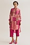 Featuring a fuchsia kurta in linen, jute and habutai silk base with embroidery. It is paired with pants. Accentuate it with hoop earrings and heels for a brunch date or sundowner.