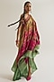 Fuchsia & Sage Habutai Silk Hand Embroidered Off-Shoulder Dress